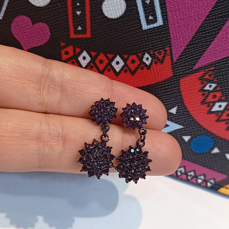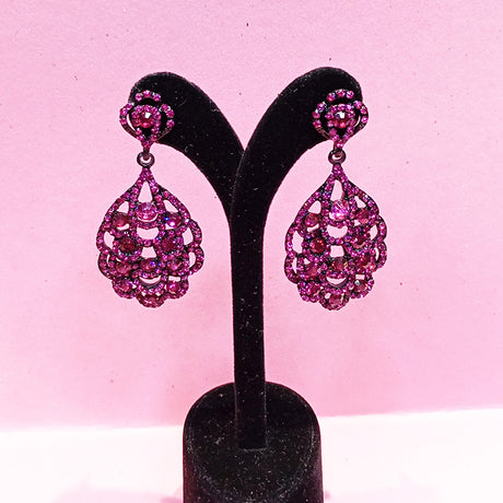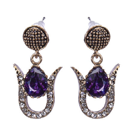 BOUCLES D'OREILLES AZNIVE EN BRONZE A PIERRE MAUVE SUR ARC SERTIE DE CRISTAUX