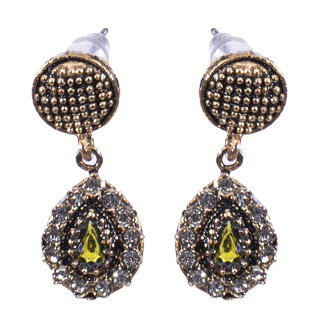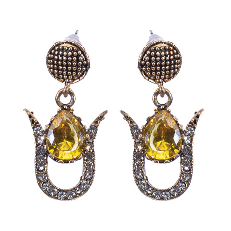 BOUCLES D'OREILLES AZNIVE EN BRONZE A PIERRE JAUNE SUR ARC SERTIE DE CRISTAUX