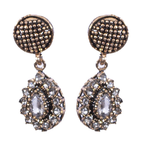 BOUCLE D'OREILLE MARGARETTE DORE SERTI DE STRASS EN FORME D'EVENTAIL.