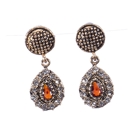 BOUCLES D'OREILLES AZNIVE EN BRONZE A PIERRE ROUGE ORANGÉ SUR ARC SERTIE DE CRISTAUX