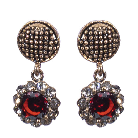 BOUCLES D'OREILLES YEVA EN BRONZE A PIERRE NATURELLE ROUGE CIRCULAIRE