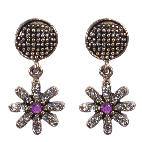 BOUCLES D'OREILLES ZARMEN EN BRONZE A PIERRE VIOLETTE A FORME D'ETOILE DE MER