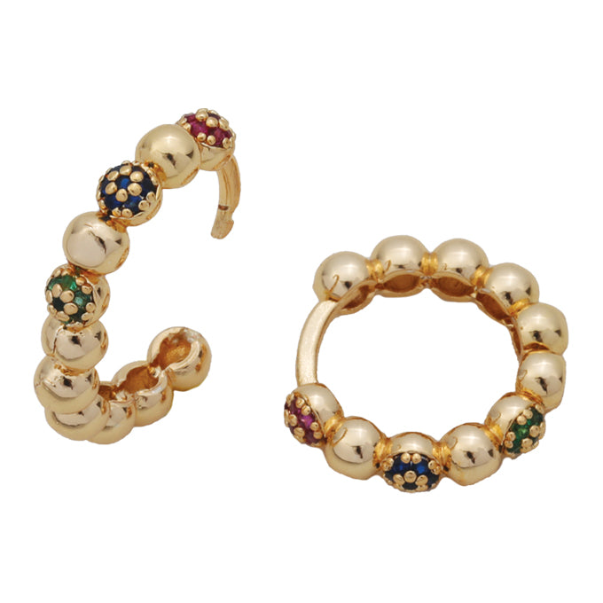 Boucle d'oreille Ambre doré à 11 boules donc 3 coloré violet-bleu-vert.