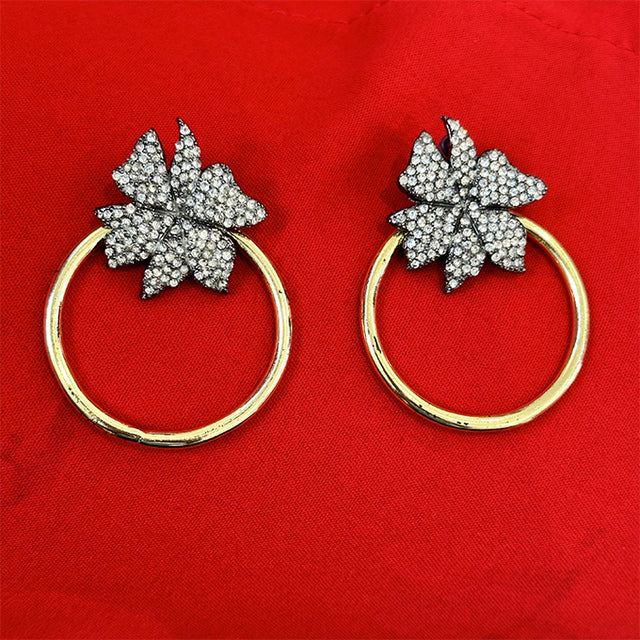 Boucles d'oreilles Ketty en bronze doré, forme de semi-circulaire à fleur bronzée sertie de strass.