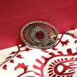 Broche Maude en bronze, en forme de brasseur, avec une grande pierre naturelle rouge incrustée au milieu, serti de strass