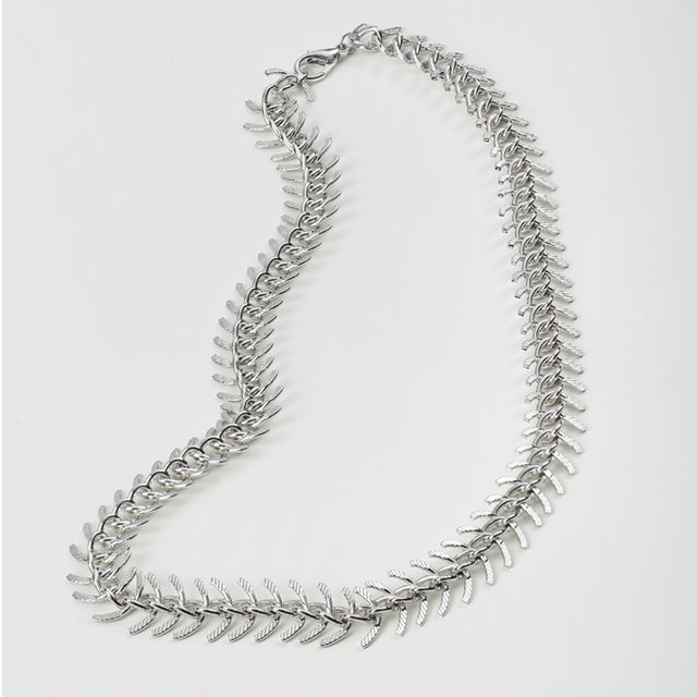 Collier Jolly ajustable argenté en forme d'arête de poisson.