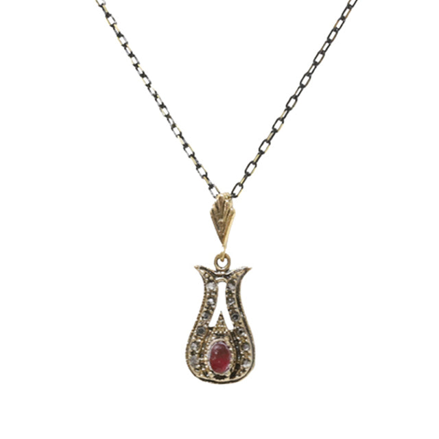 Collier Chandra bronze avec médaillon en forme de carafe, sertie d'une grande perles.