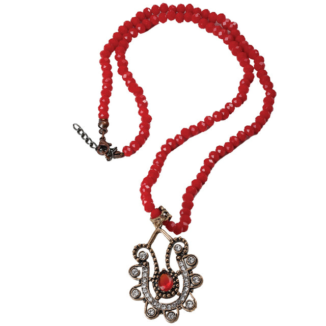 Collier en bronze à pierres naturelles rouge Malaika, pendentif en bronze massif à 9 pierres crystales et 1 grande pierre rouge.