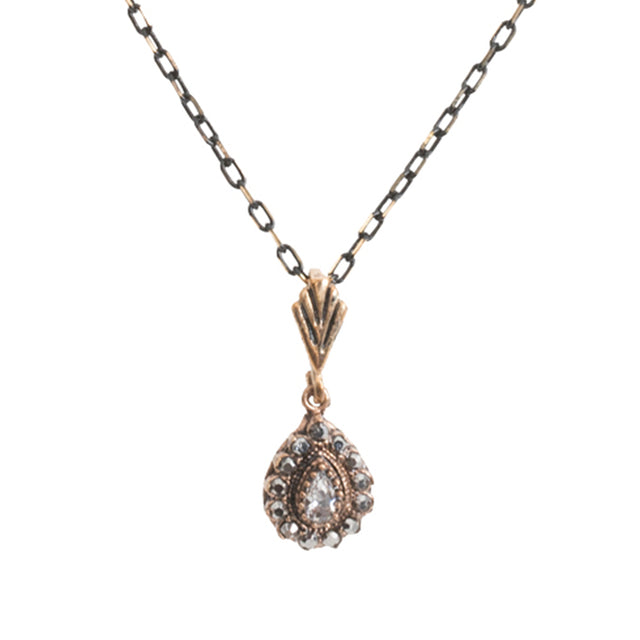 Collier Jade bronze avec médaillon en forme d'amande, sertie de perles.