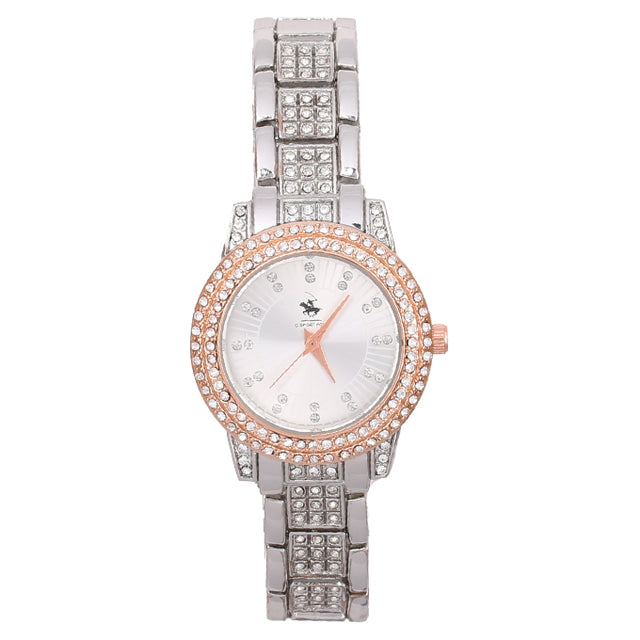 MONTRE POLO P0050 DORE AUX STRASS. CAD DORE, INT ARGENTE.