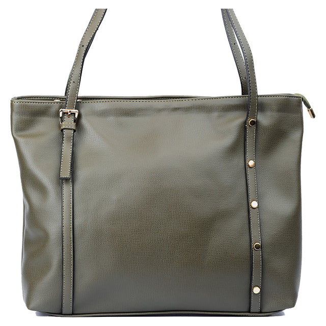 Sac à main cabas Maara en simili cuir Vert Foncé. Ouverture zippée. Intereur personnalisé. Certie sur le côté. 10x33x46