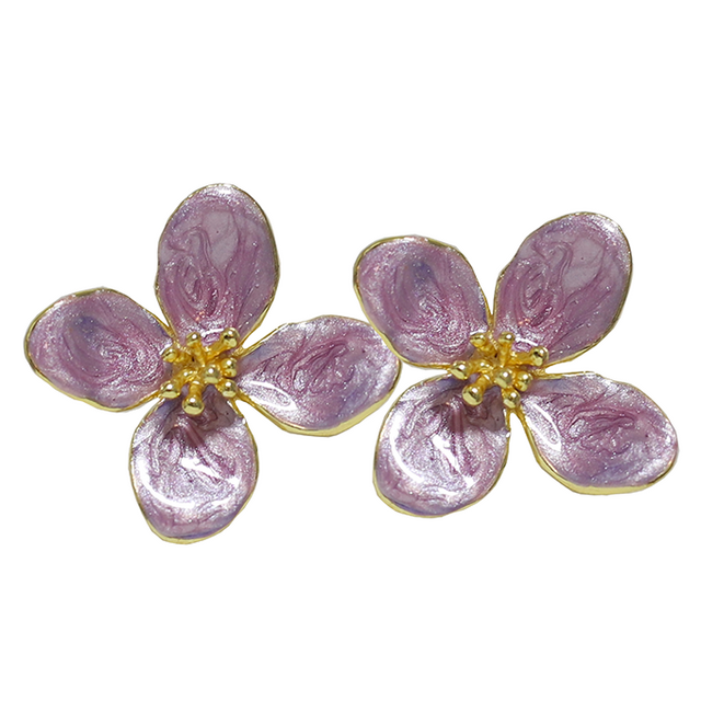 Boucles d'oreilles enora en bronze en forme d’hibiscus violet.